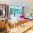 Located on higher floors, these rooms offer the same amenities as the standard room but with panoramic views of the sea, gardens, or pool.Family Room