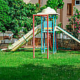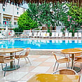 A small outdoor pool with a dedicated children’s section, surrounded by sunbeds and umbrellas. The pool area is lively during the day and offers plenty of space for relaxation.Sun Terrace: