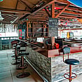 The bar area features a large TV for sports events and is generally a quiet spot in the evenings, except during major football matches.