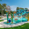 Multiple outdoor pools with sun loungers and umbrellas, a dedicated children’s pool, an indoor pool, and waterslides for family fun.Private Beach: