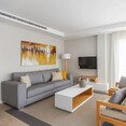 Modern décor, two separate bedrooms, fully equipped kitchen (fridge, oven, stovetop, microwave), spacious living and dining area, private balcony or terrace, air conditioning, free Wi-Fi, flat-screen TV, safe, and bathroom with shower and hairdryer.