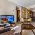 Room TypeDescriptionDeluxe RoomModern and spacious, featuring a balcony, air conditioning, minibar, plasma TV, and en-suite bathroom.Deluxe Pool View RoomOffers stunning views of the pool area, with all the amenities of the Deluxe Room.Residential ApartmentIdeal for families or longer stays, includes a separate living room, balcony, kitchenette, and city or pool views.Accessible RoomSpecially designed for guests with reduced mobility, featuring adapted facilities and easy access.