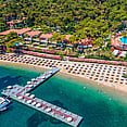 Set overlooking the breathtaking Bay of Marmaris, Grand Yazici Club Turban Thermal enjoys direct access to its private sandy beach and is surrounded by fragrant pine forests. Just 650 meters from local shops and restaurants, it is 4 kilometers from central Marmaris and 4.5 kilometers from Icmeler resort. Dalaman Airport is approximately 59 miles away, making travel seamless for international visitors. The prime location balances peaceful natural surroundings with proximity to Marmaris’s vibrant nightlife, shopping, and cultural attractions.