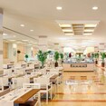 Breakfast, lunch, and dinner are served in a spacious, modern setting.