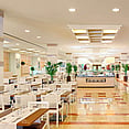 Breakfast, lunch, and dinner are served in a spacious, modern setting.