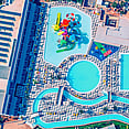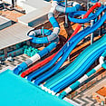 Ten different style pools, including Olympic-sized pools, adults-only pools, children’s pools, and a heated indoor pool.Waterpark: