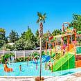 On-site water park with splash features and slides, ideal for children
