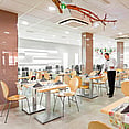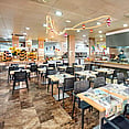 Serves breakfast, lunch, and dinner in a buffet style with show cooking stations.