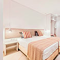 Ideal for larger families or groups, these spacious apartments include two bedrooms, a living and dining area, a full kitchenette, bathrooms, and balcony or terrace overlooking the gardens or pool. Accommodates up to six guests.