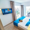 Room TypeDescriptionStandard Double RoomAir-conditioned, flat-screen TV, private bathroom, terrace with city or pool views, two beds.Family RoomLarger space, ideal for families, air-conditioned, flat-screen TV, private bathroom, terrace.SuiteSeparate bedroom and living room, private bathroom with bath or shower, terrace with sea views.Family Suite Partial Sea ViewSpacious family accommodation, partial sea views, air conditioning, fridge, kettle, balcony.Single RoomPerfect for solo travelers, air conditioning, balcony with garden views, private bathroom.Facilities