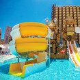Swimming Pools: Outdoor freshwater pool with a children’s section, sunbathing area with loungers and parasols, and a splash park featuring water cannons, sprinklers, and a waterfall.