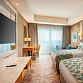 Room TypeDescriptionStandard Land View Room26 m², French or twin beds, air conditioning, minibar, shower, work desk, balcony, max 3 adults.Standard Side Sea View Room26 m², similar to Standard Land View but with partial sea views, max 3 adults.Annex Standard Garden Room26 m², set in tranquil gardens, French or twin beds, ideal for guests seeking privacy.Annex Standard Pool Room26 m², poolside location, direct pool access, French or twin beds, max 2 adults.Annex Standard Swim-up Room26 m², direct access to the pool from the balcony, French or twin beds, max 2 adults.Annex Family RoomDouble-storey, two connected rooms, next to the ocean and children’s pools, perfect for families.Duplex SuiteSpacious suite with private terrace, hot tub, floor-to-ceiling windows, garden views.Junior SuiteElegant suite with separate living area, premium amenities, and sea or land views.Colonel SuiteLuxurious suite for larger groups, king and single beds, multiple bathrooms, expansive terrace.Facilities