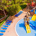 Swimming Pools: Seven outdoor pools, including dedicated children’s pools with slides, a pirate ship, and splash zones. There is also a heated indoor pool for year-round enjoyment.